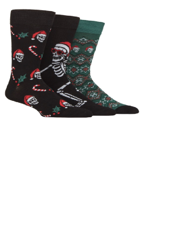 Christmas Skulls Novelty Bamboo Socks pack of 3 Mens size 7-11