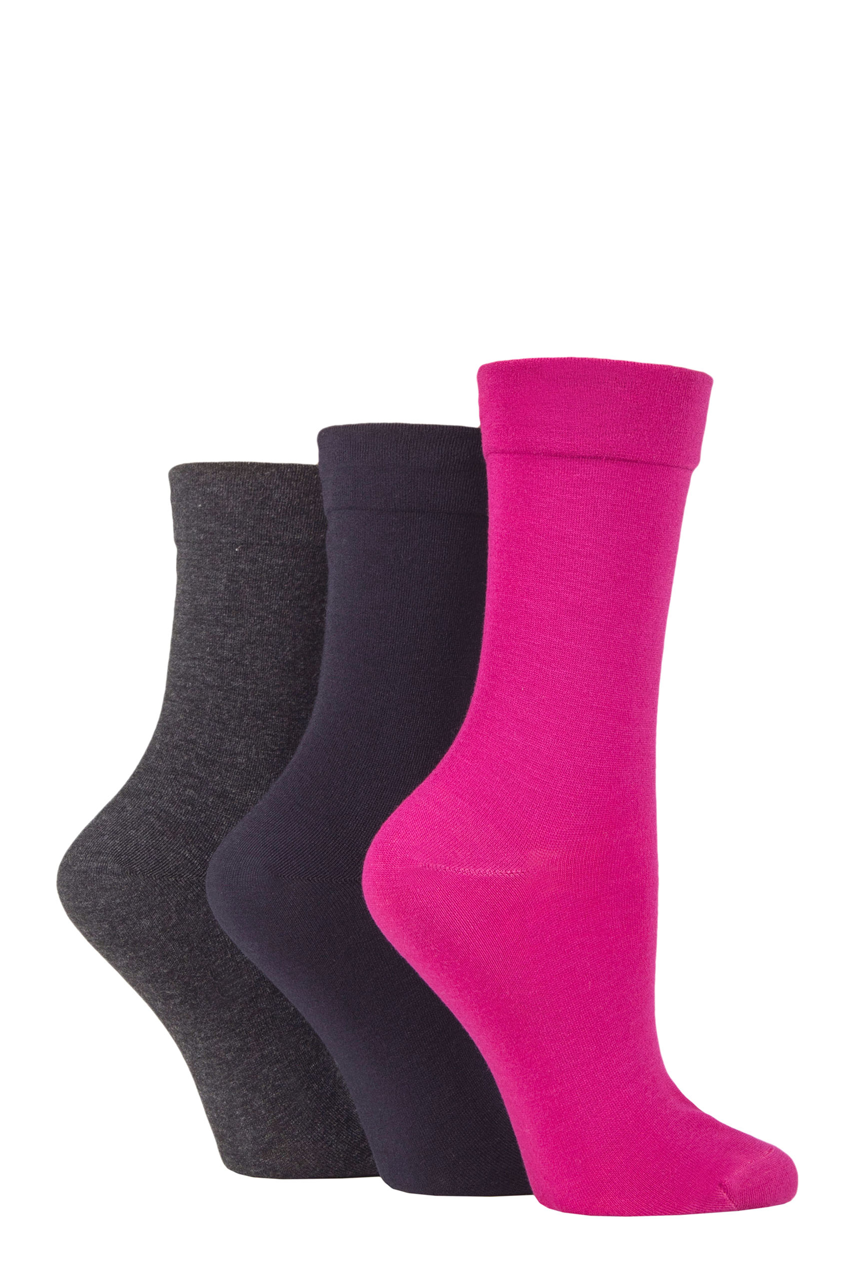 Gentle Natural Bamboo Socks, ladies size 4 to 8 Pink/Charcoal/Navy 3 pack