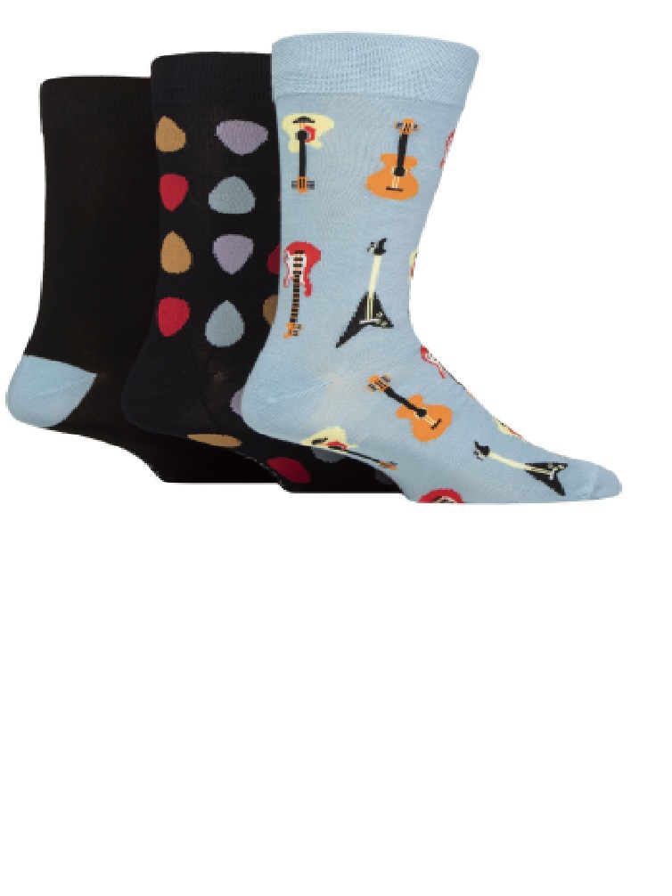 Guitars Novelty Bamboo Socks pack of 3 Mens size 7-11